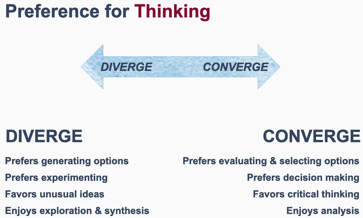 - Along the x-axis, employees are asked: Do you prefer divergent thinking or convergent thinking?