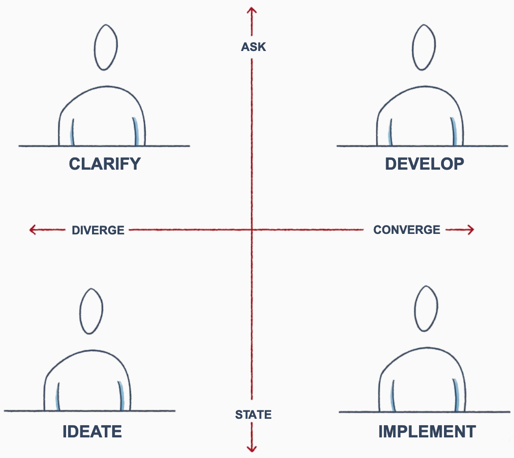 Clarifiers, ideators, and developers need to have a voice in innovation too. Familiarity with the earlier phases of design thinking demonstrates why. The ability to confidently make decisions is an asset when you are refining prototypes and negotiating with external stakeholders. But earlier in the process, it can be a disadvantage.