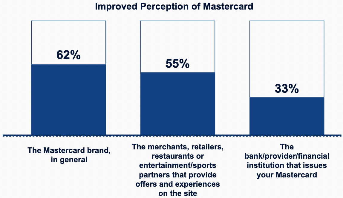 - Enhanced perception of its bank and merchant partners, as consumers associate these entities with the meaningful experiences Mastercard facilitates.