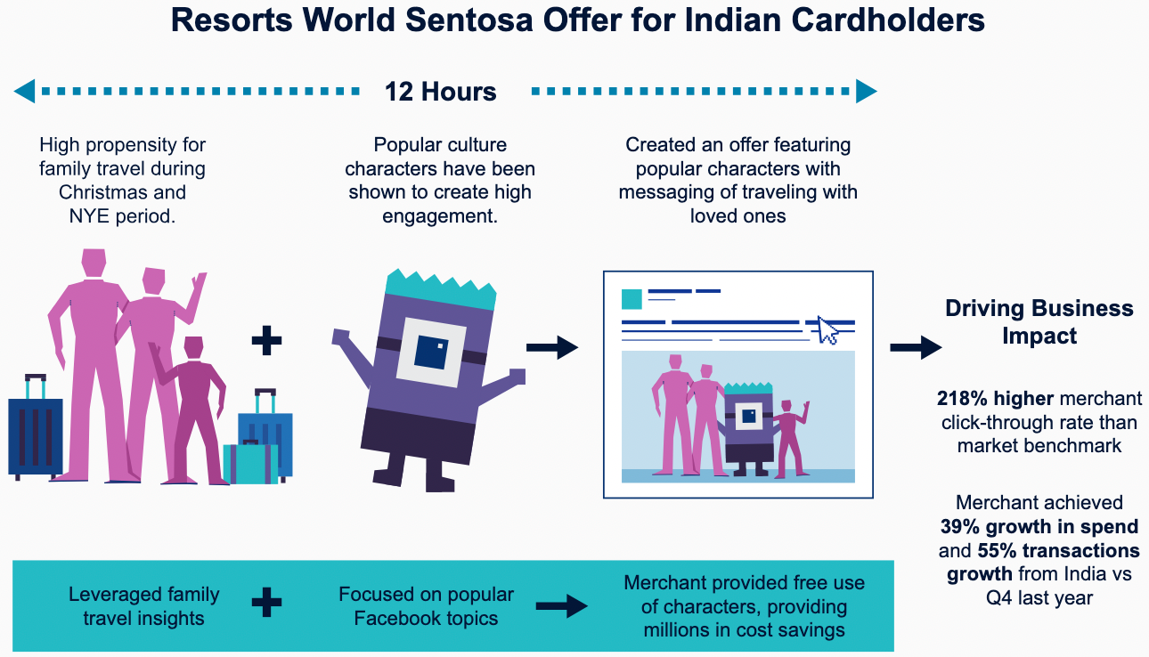 Mastercard is able to connect Indian consumers with an offer from a Singapore resort that benefits both the Indian bank and the Singapore merchant.