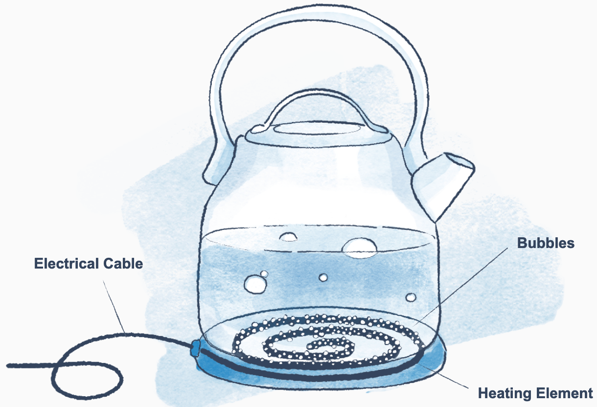 As you look at this kettle, just think about different ways in which you might be able to change the design so that you can boil water faster.