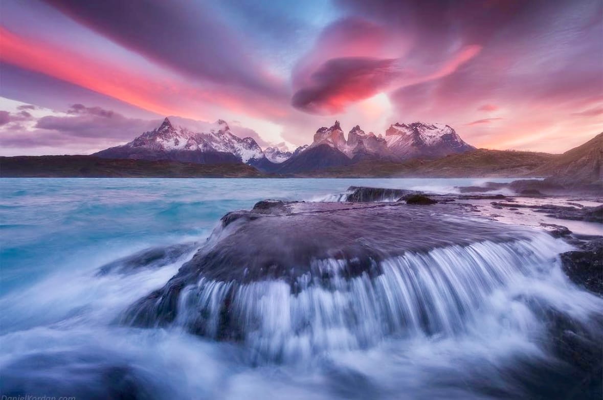 El 12 de abril salgo desde Medellín con rumbo a Puerto Natales. Después de horas de vuelo y una travesía por la estepa, llego por la tarde al lodge Explora dentro del Parque Nacional Torres del Paine. La camioneta de traslado me deja en la entrada y, apenas bajo, noto la inmensidad del paisaje: el Lago Pehoé reluce a pocos metros y, de fondo, los majestuosos Cuernos del Paine iluminados por el atardecer.