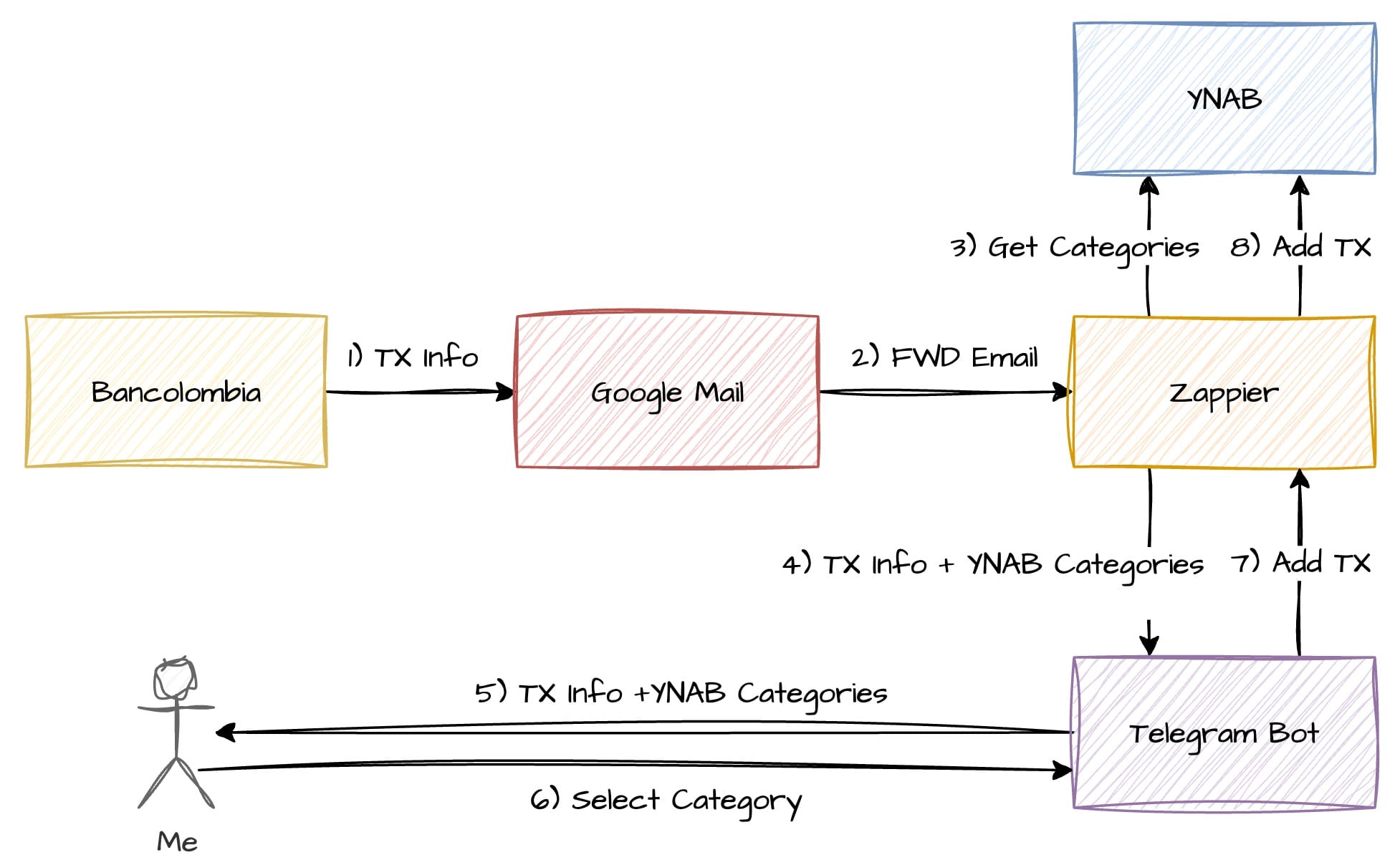 - YNAB API โ to create transactions and cover categories automatically.